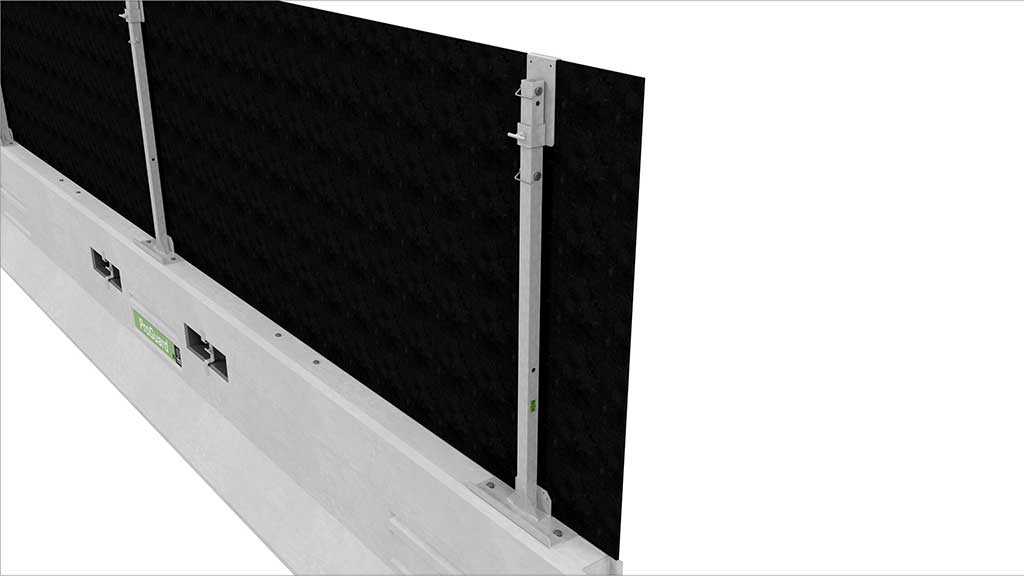 Oavsett valet av panel eller skivor används samma stolpe. Skivmaterialet kan därför anpassas efter förhållandena på det specifika projektet.