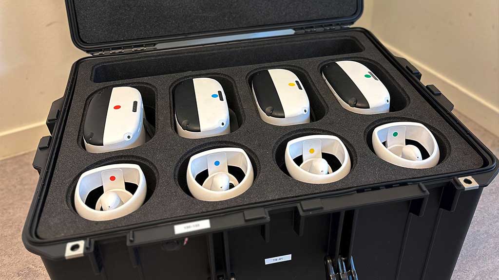 All nödvändig utrustning medförs till varje utbildningstillfälle i en transportlåda tillsammans med 4G-router för självständig Internetanslutning.