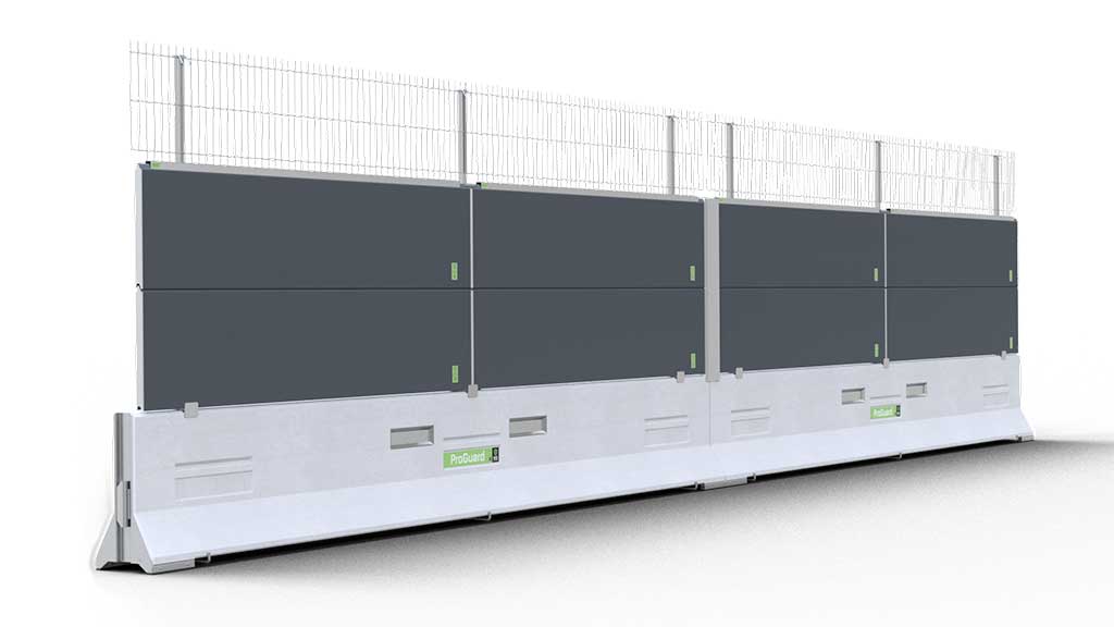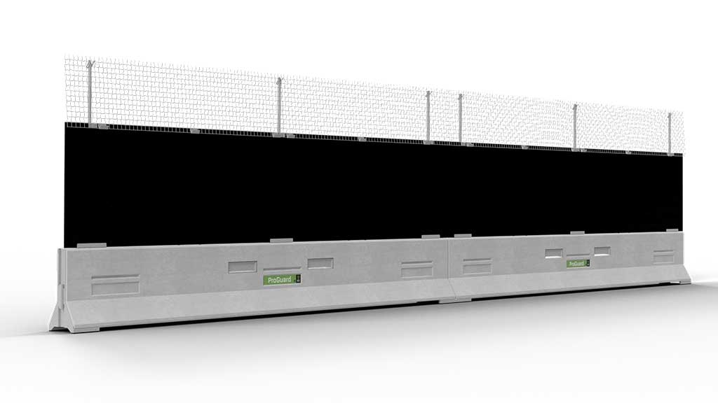 NRC är ett 2,3 m högt, ljudavskärmande och insynskyddande system uppbyggt av stryktåliga, mjuka skärmar till ProGuard City med GC-räcken.